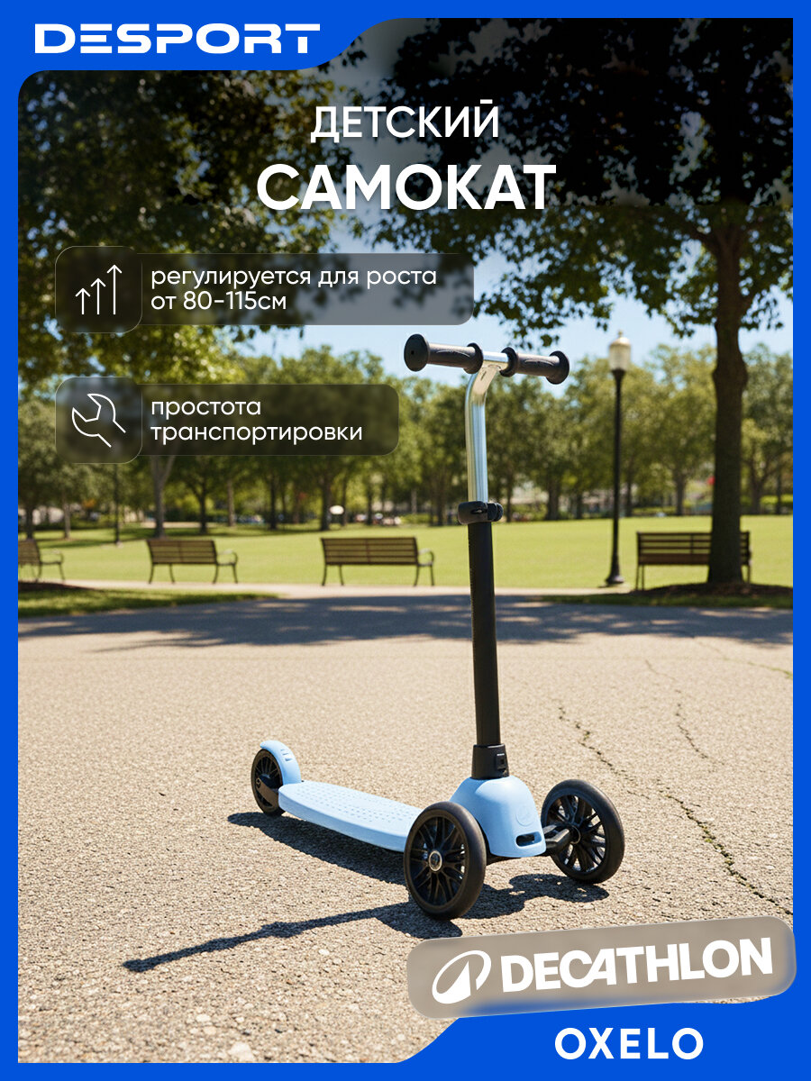 Самокат трехколесный детский Oxelo с регулеровкой руля, голубой: сравнение цен, характеристики, фото, актуальное наличие и цены.