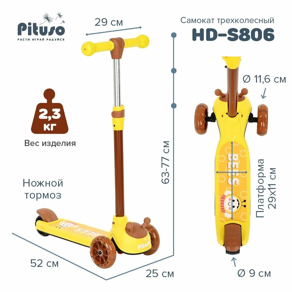 Самокат трехколесный детский Pituso HD-S806, регулировка высоты руля, светящиеся колеса, цвет желтый: сравнение цен, характеристики, фото, актуальное наличие и цены.