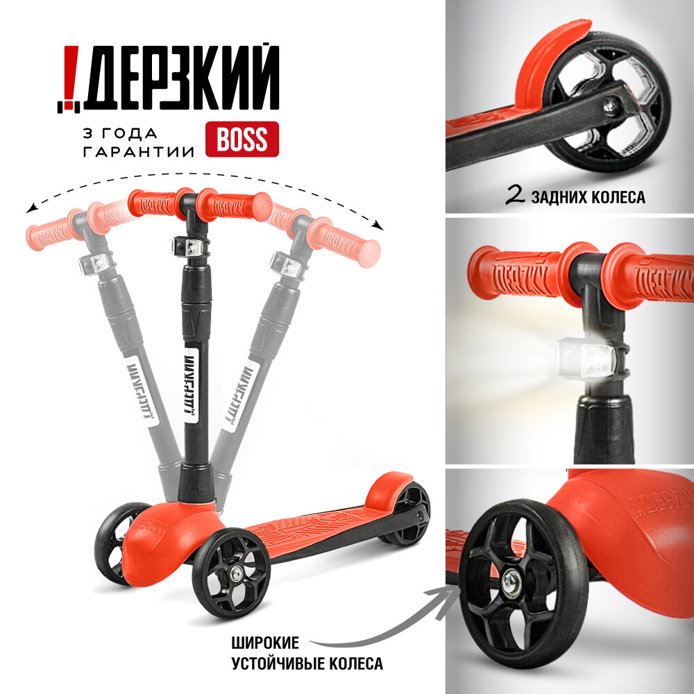 Купить Самокат трехколесный детский с фонариком ! Дерзкий BOSS, 3-6 лет с доставкой по всей России.