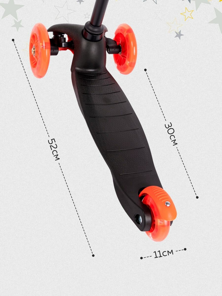 диаметр заднего колеса: 80 мм; жесткость колеса: 82A; класс подшипника: ABEC 7; минимальная высота рулевой стойки: 51 см; вид тормоза: наступной; материал колес: полиуретан