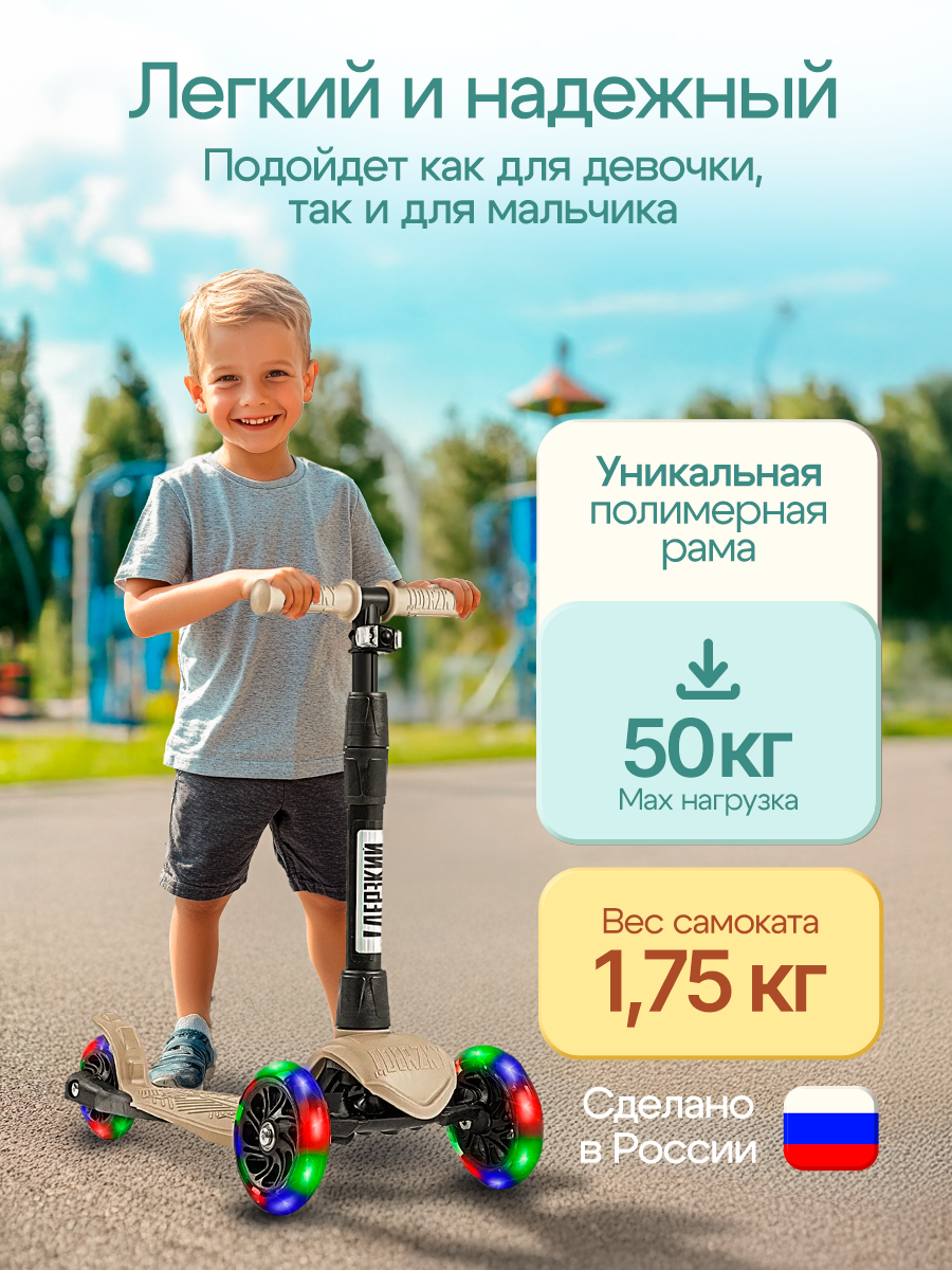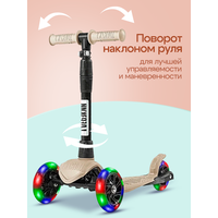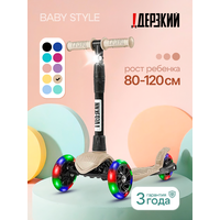 Купить Самокат трехколесный детский Стайл с фонариком 1-4 года со светящимися колесами, бежевый с доставкой по всей России.