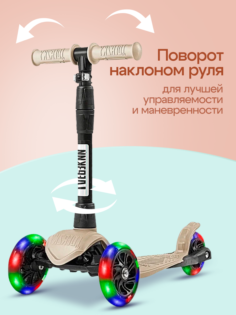 Самокат трехколесный детский Стайл с фонариком 1-4 года со светящимися колесами, бежевый: сравнение цен, характеристики, фото, актуальное наличие и цены.