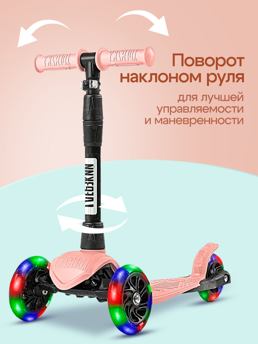 Самокат трехколесный детский Стайл с фонариком 1-4 года со светящимися колесами, нежно-розовый: сравнение цен, характеристики, фото, актуальное наличие и цены.