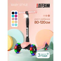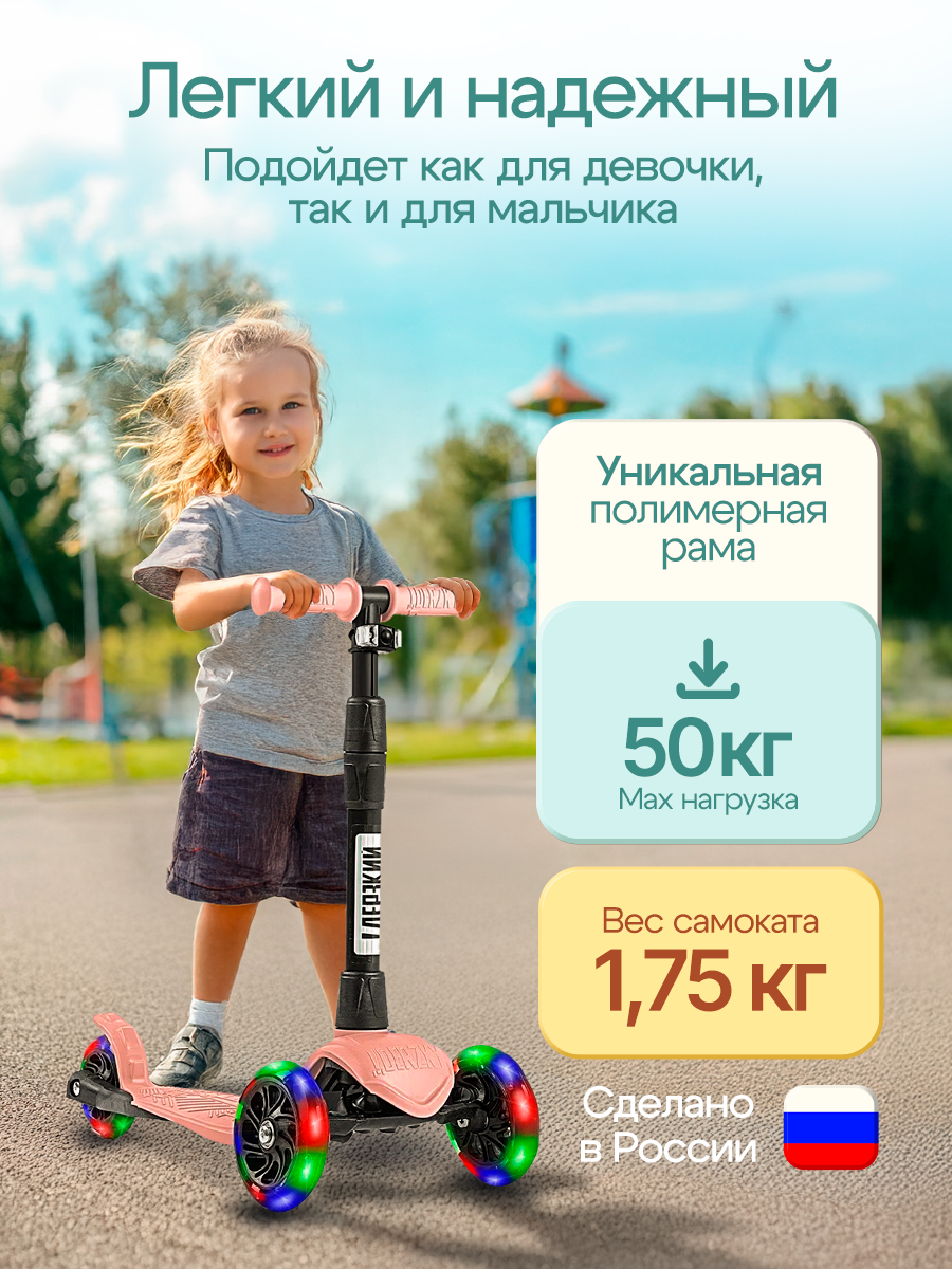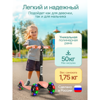 Купить Самокат трехколесный детский Стайл с фонариком 1-4 года со светящимися колесами, нежно-розовый с доставкой по всей России.