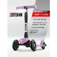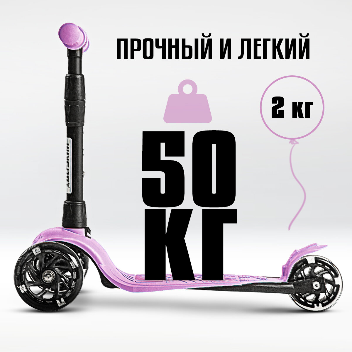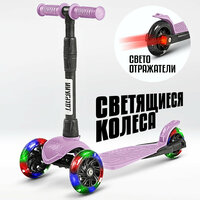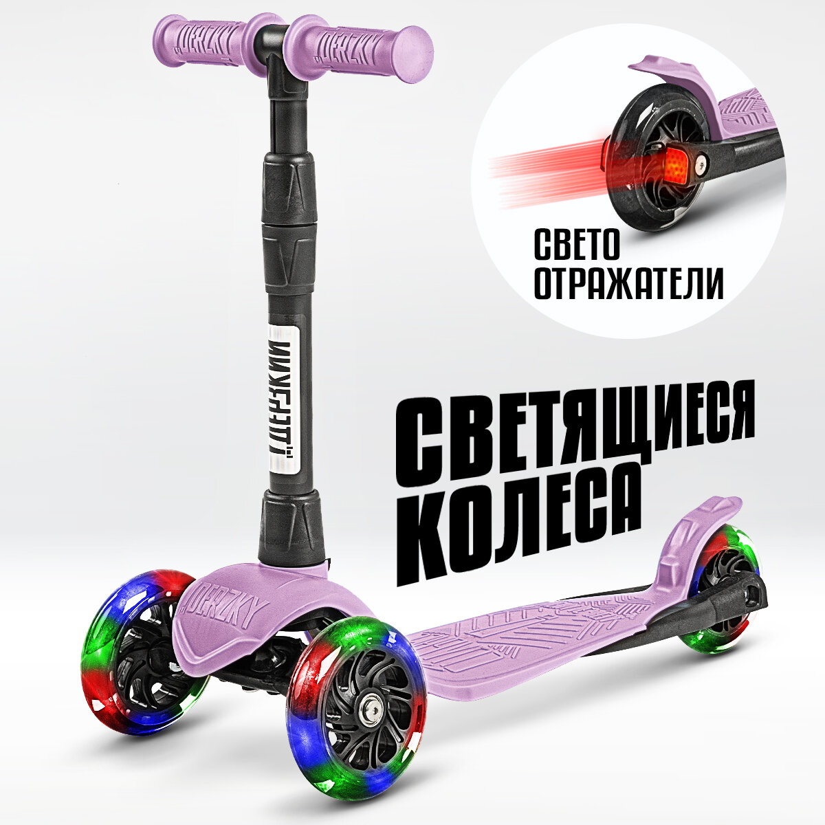 Купить Самокат трехколесный детский Стайл с фонариком 1-4 года со светящимися колесами, сиреневый с доставкой по всей России.