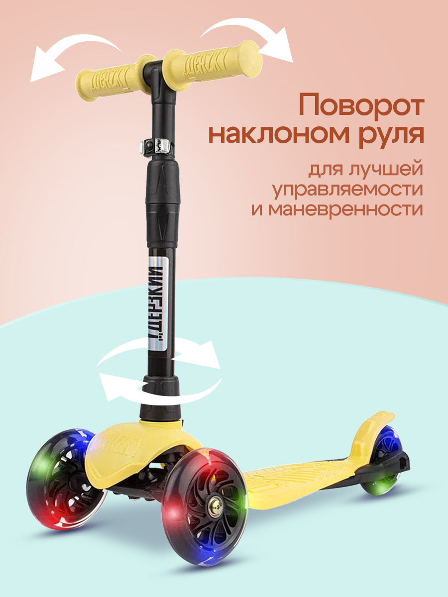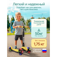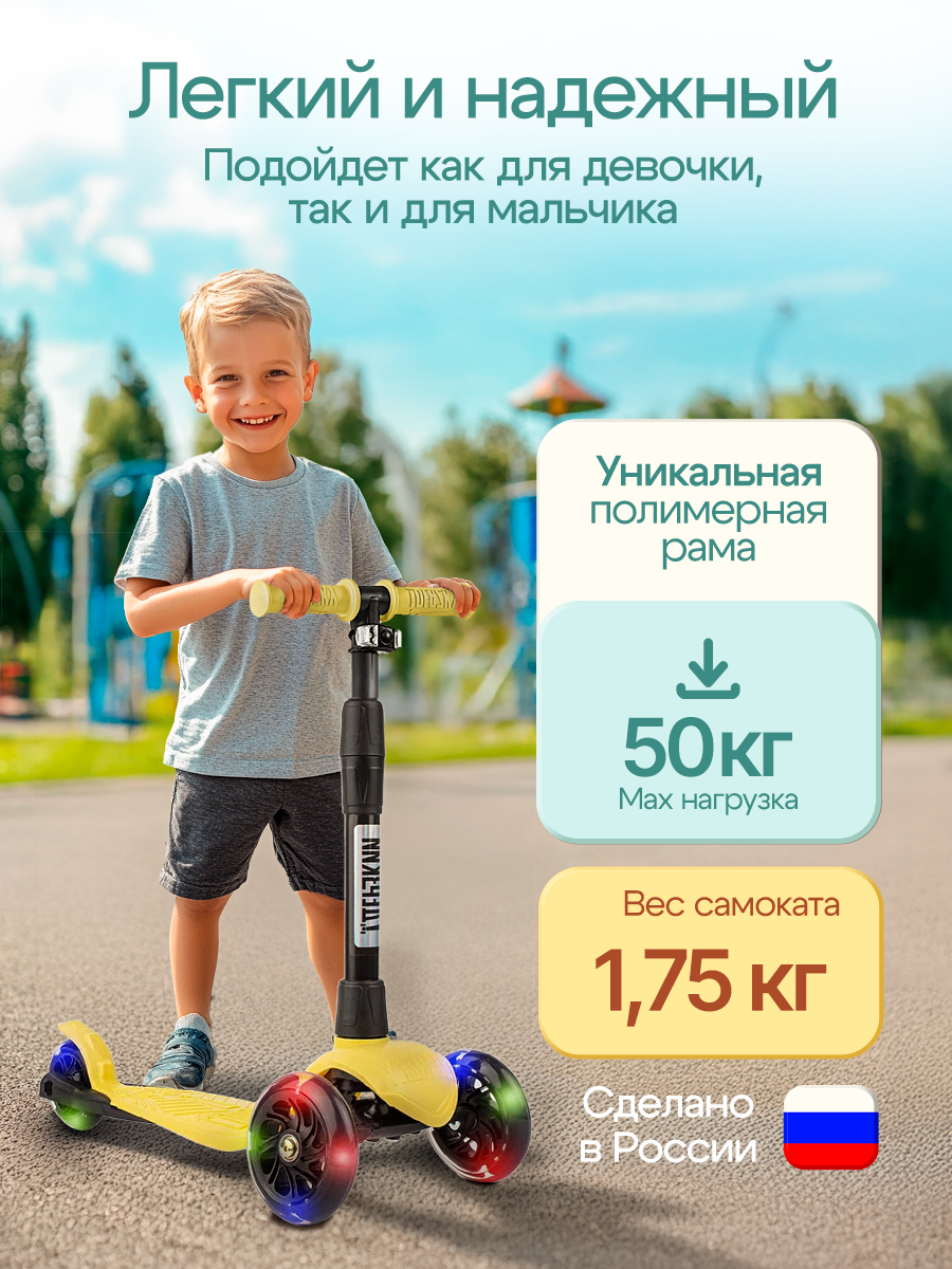 Купить Самокат трехколесный детский Стайл с фонариком 1-4 года со светящимися колесами, желтый с доставкой по всей России.