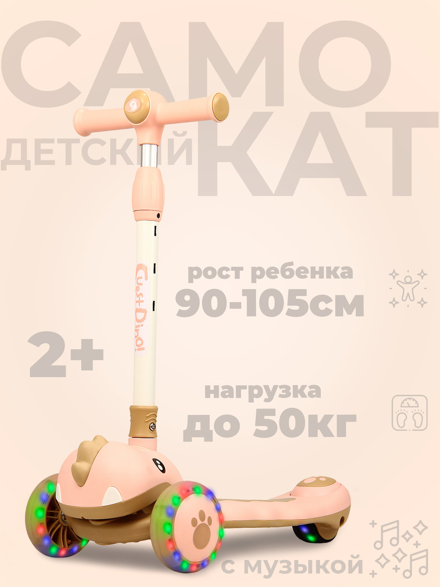 Самокат трехколесный детский TOPEMOUNT «Дракоша» , музыкальный, светящаяся дека, Розовый: сравнение цен, характеристики, фото, актуальное наличие и цены.