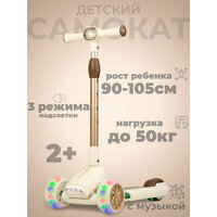 Купить Самокат трехколесный детский TOPEMOUNT «Gold Scooter» , музыкальный, светящаяся дека, фара, Белый с доставкой по всей России.
