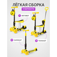Купить Самокат трехколесный FANNY 3в1 (светящиеся колеса 120/96 мм, нагрузка до 40 кг) желтый с доставкой по всей России.