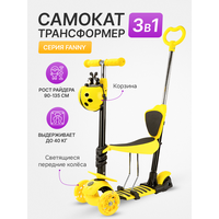 Самокат трехколесный FANNY 3в1 (светящиеся колеса 120/96 мм, нагрузка до 40 кг) желтый: сравнение цен, характеристики, фото, актуальное наличие и цены.