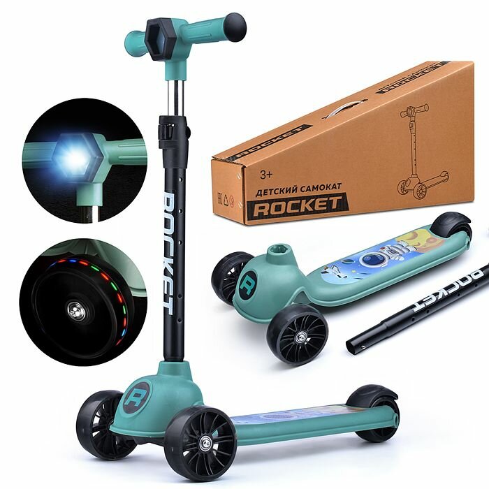 Самокат трехколесный, разборный, с фарой, высота руля регулируется(61-77см), нагрузка до 50 кг. Изумрудный.: сравнение цен, характеристики, фото, актуальное наличие и цены.