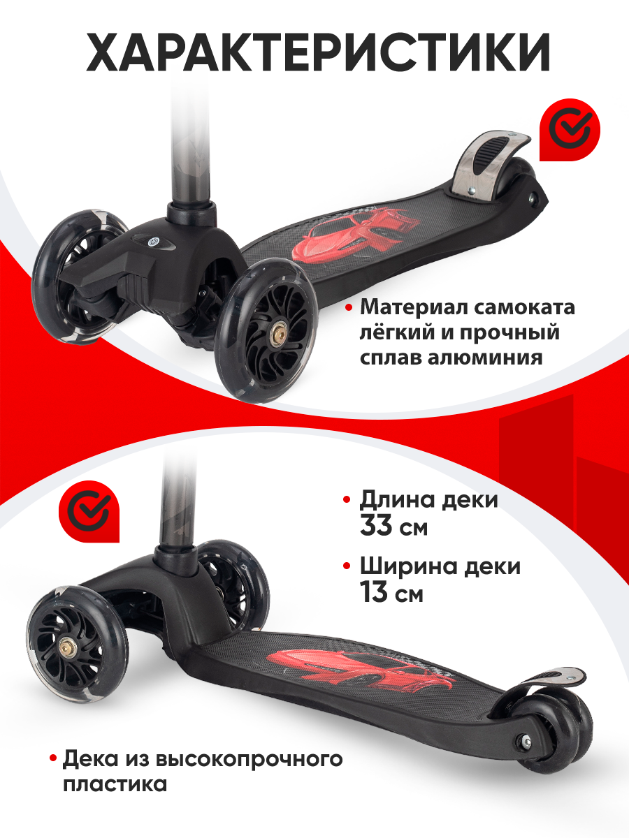 Самокат трехколесный Track (57*13*66-89, кол. 118/76мм PU со светом, до 50кг) черный: сравнение цен, характеристики, фото, актуальное наличие и цены.