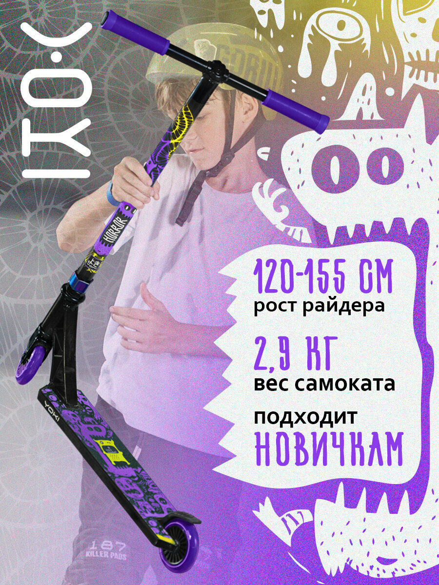 Самокат трюковой для детей и подростков, с колесами 100 мм, HORROR: сравнение цен, характеристики, фото, актуальное наличие и цены.