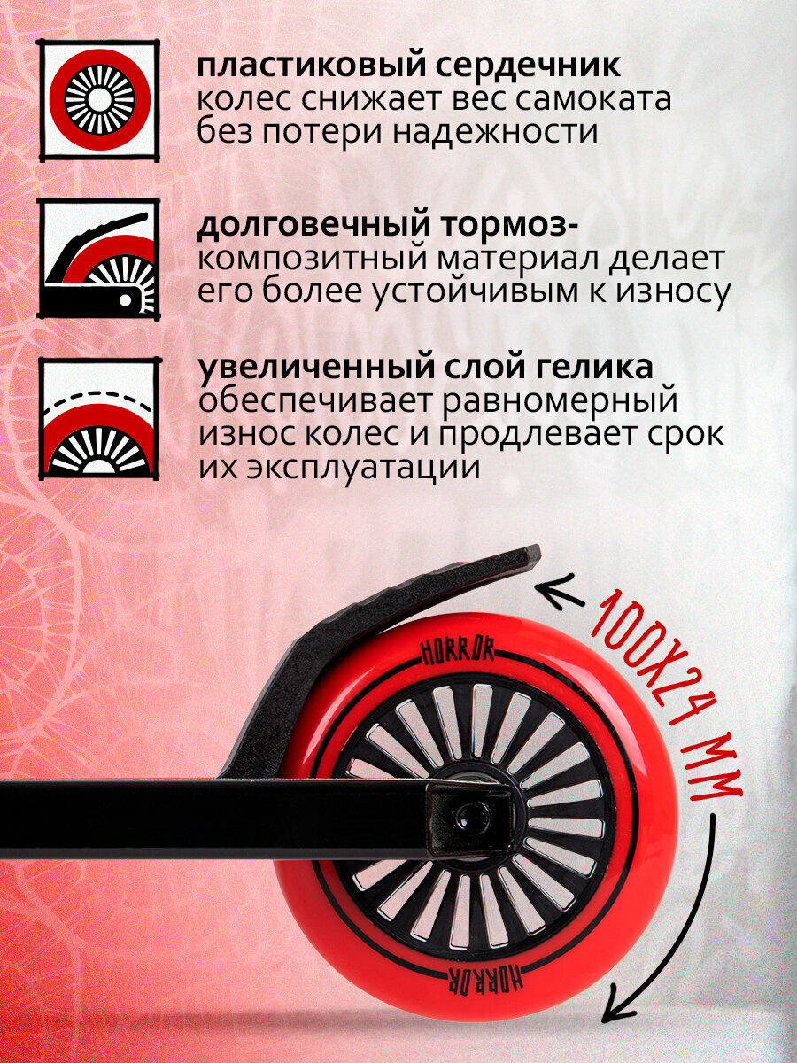Самокат трюковой для детей и подростков, с колесами 100 мм, HORROR: сравнение цен, характеристики, фото, актуальное наличие и цены.