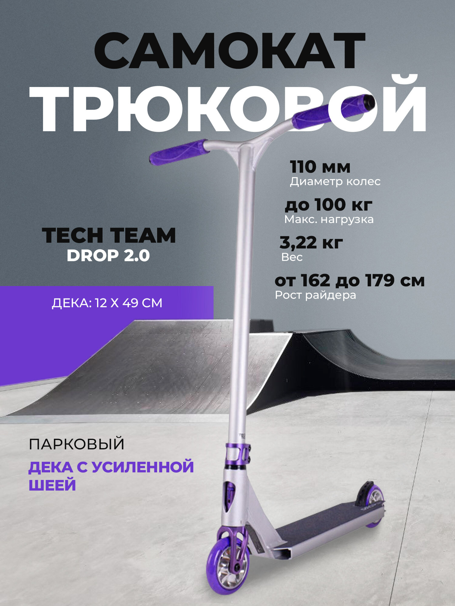 Купить Самокат трюковой TechTeam Drop 2.0 purple с доставкой по всей России.