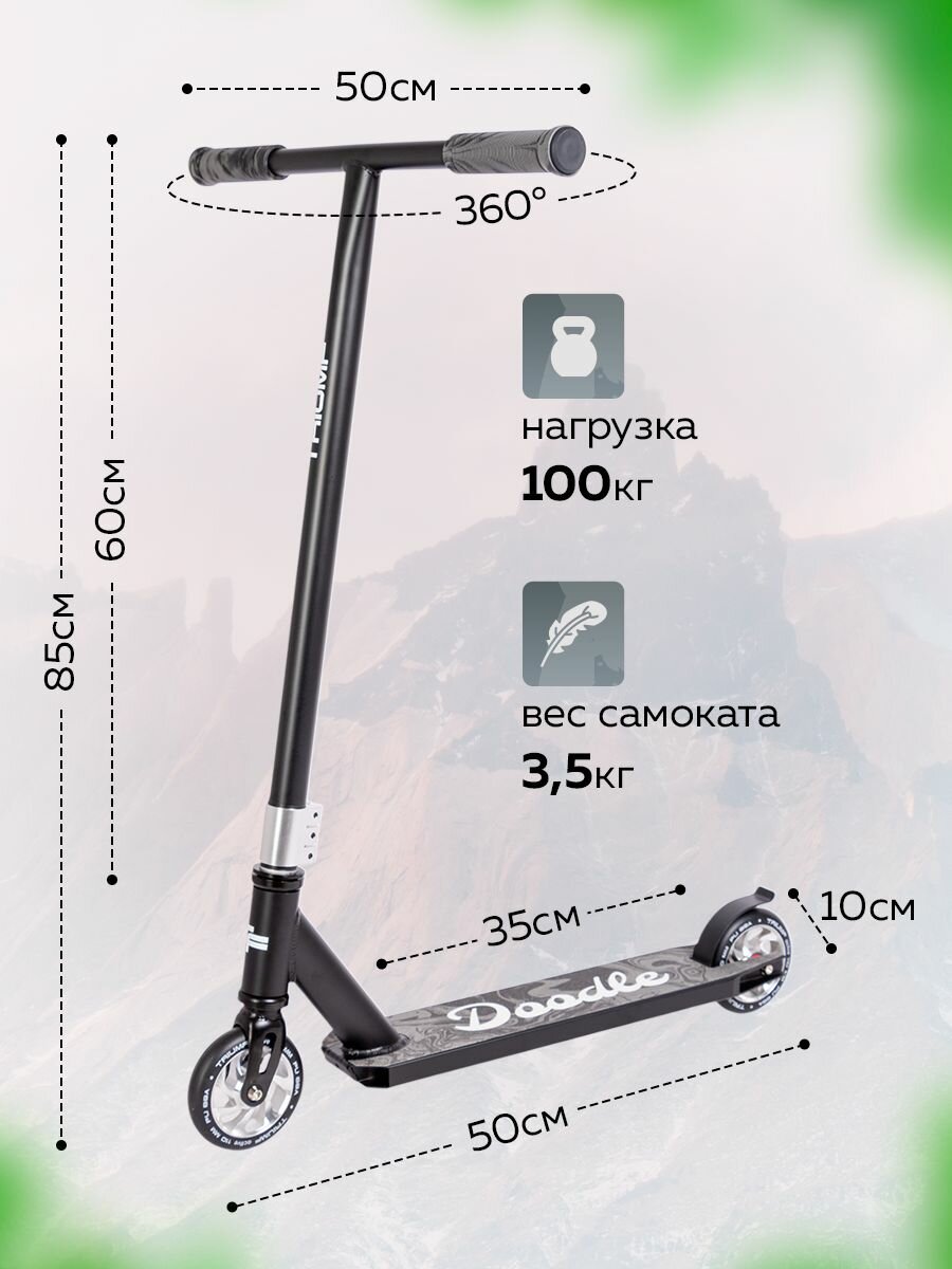 | Дополнительная информация | тормоз-крыло; диаметр заднего колеса: 100 мм; класс подшипника: ABEC 9; вид тормоза: наступной; материал колес: полиуретан; длина самоката: 67 см; комплектация: ключ для сборки |