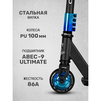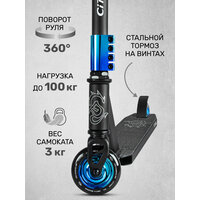 Трюковый самокат CityRide отлично подойдет для начинающего райдера. С ним легко освоить первые трюки и получить массу положительных эмоций от экстремального катания. • Алюминиевый хомут и пластиковые диски надежно защищены от коррозии и внешних повреждений • Легкая и прочная алюминиевая дека 50*10 см • Оптимальная высота руля 56 см подойдет многим начинающим райдерам. Высота руля от пола 80 см • Прочность самоката обеспечивается за счет усиленной передней вилки и усиленной 4-х болтовым алюминиевым хомутом стойки стального руля • Резьбовая компрессия вилки начального уровня • Руль вращается на 360°, что позволяет делать разнообразные трюки • Износостойкие грипсы из прозрачного TPR препятствуют скольжению рук и делают катание максимально безопасным • Колеса размером 100 мм из полиуретана обладают исключительной подвижностью и маневренностью благодаря подшипникам Abec 9 • Стальной тормоз устроен максимально просто, но при этом отличается надежностью и удобством эксплуатации