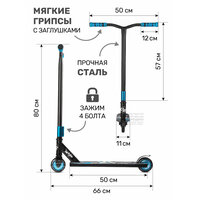 Трюковый самокат CityRide TEMPO отлично подойдет для начинающего райдера. С ним легко освоить первые трюки и получить массу положительных эмоций от экстремального катания. • Алюминиевый хомут и диски надежно защищены от коррозии и внешних повреждений • Легкая и прочная алюминиевая дека 50*11 см • Оптимальная высота руля 57 см подойдет многим начинающим райдерам. Высота от пола 80 см • Прочность самоката обеспечивается за счет усиленной передней вилки и усиленной 4-х болтовым алюминиевым хомутом стойки стального руля • Компрессия на основе резьбовой вилки • Руль вращается на 360°, что позволяет делать разнообразные трюки • Износостойкие грипсы из прозрачного TPR препятствуют скольжению рук и делают катание максимально безопасным • Колеса размером 100 мм из полиуретана обладают исключительной подвижностью и маневренностью благодаря подшипникам Abec 9 • Стальной тормоз устроен максимально просто, но при этом отличается надежностью и удобством эксплуатации.