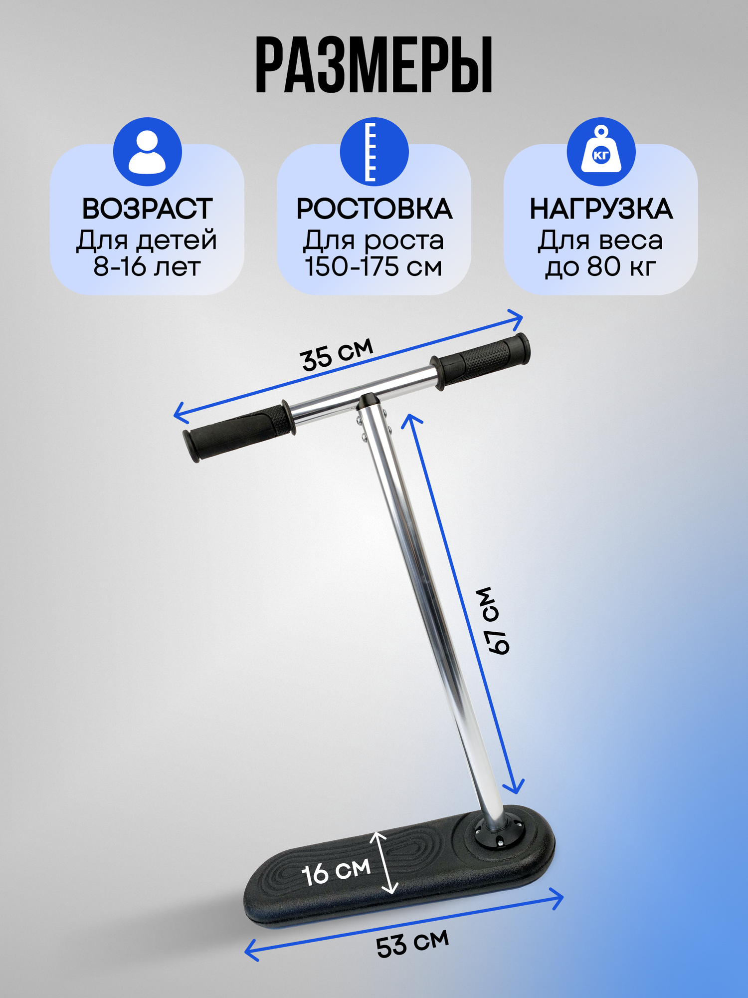 Скутер для выполнения трюков на батуте Nonstopika Scooter Flip 67см предназначен для пользователей ростом 150 - 175 см и возрастом от 8 до 16 лет.