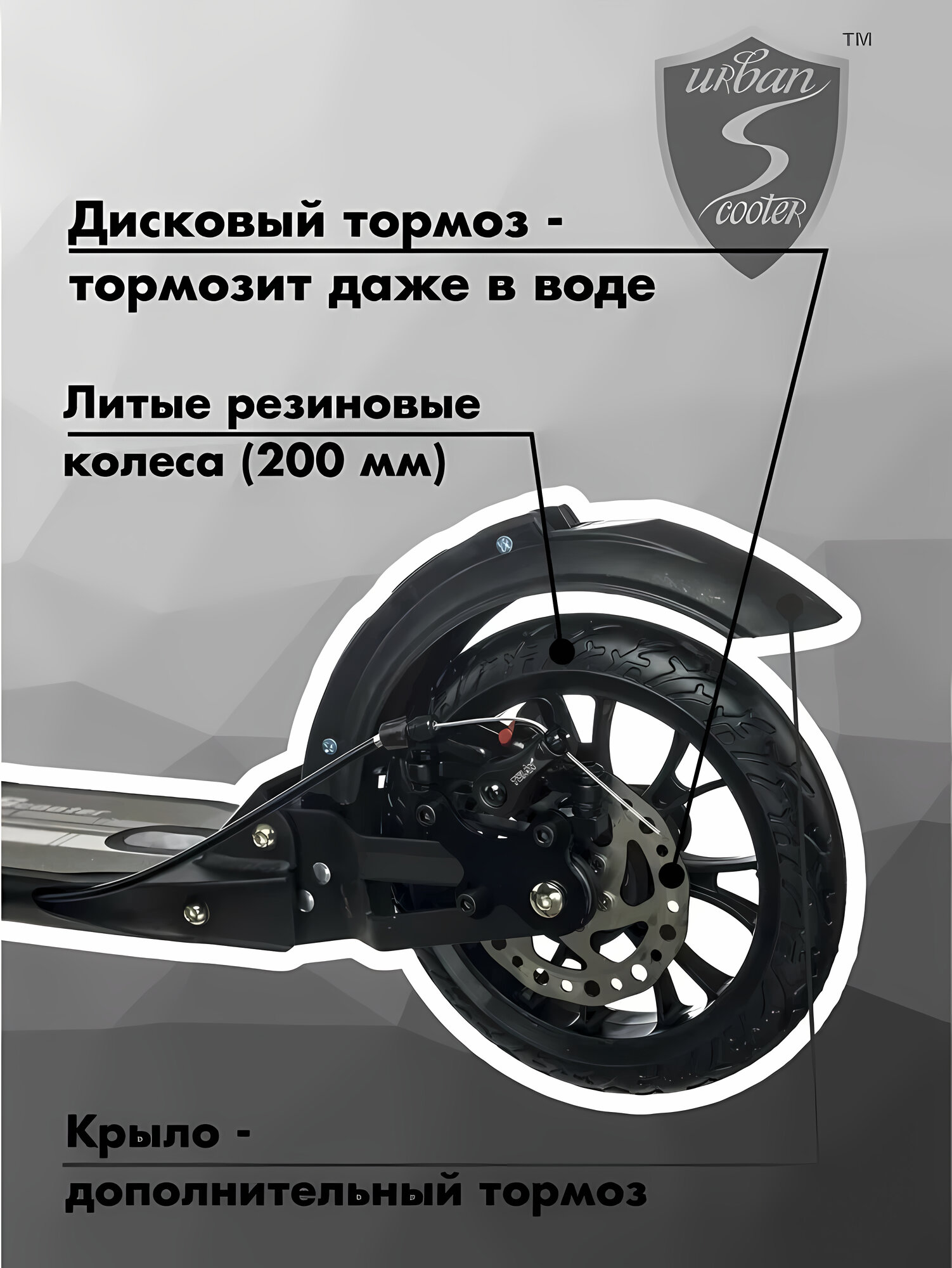 Купить Самокат Urban Scooter Disc Black, , с дисковым тормозом, складной, городской, двухколесный,взрослый,Kids с доставкой по всей России.