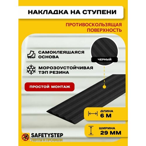 Цена за 1 бухту - 6 погонных метров Предназначен для установки на ступенях лестниц, пешеходных зон, а также в помещениях с повышенной влажностью (душевые комнаты, бассейны и т. д.) в качестве антискользящей полосы Размер: 29мм высота - 3,2мм Бухта: 6 метров Приклеивание: от +10С Температурный режим : 40С-+60С Материал: ТЭП резина Цвет: черный Рекомендуется для внутренних работ. Для средней и малой проходимости. Cамоклеящаяся тактильная полоса против скольжения 29 мм предназначен для облицовки углов ступеней на лестницах, в бассейнах, в душевых комнатах и в других местах, как внутри, так и снаружи помещения, с гладкой поверхностью пола, где вероятность падения, поскользнувшись из-за повышенной влажности покрытия или его обледенения, очень велика. Противоскользящие полосы торговой марки Safetystep изготовлены из ТЭП резины. Широкая цветовая гамма дает возможность применять эти накладки не только в качестве покрытия против скольжения, но и как декоративную окантовку ступеней. Применяемый клеевой состав из Германии позволяет приклеивать противоскользящую полосу для ступеней на уже готовые ступени, отделанные керамической плиткой, керамогранитом, мрамором или деревом (после грунтования). Ширина рабочей поверхности клея 25мм мм. Инструкция ПО установке В случае хранения и транспортировки полосы против скольжения при отрицательной температуре, перед установкой противоскользящую полосу необходимо выдержать в течение 24 часов при комнатной температуре (+20°C - +30°С), для восстановления рабочих свойств клея. Нарежьте полосу по размеру. Разметьте место приклейки. Обработайте обезжиривателем участок ступени, куда собираетесь наклеить полосу. В холодное время года (температура ниже +10°С) прогрейте поверхность ступени строительным феном или другим тепловым прибором от +50°С до +90°С. Снимите полосы против скольжения защитную плёнку. Аккуратно наложите полосу клеевым слоем на нужное место. Сильно прижмите его и прокатайте каким-нибудь круглым предметом. Не рекомендуется отрыв и повторное приклеивание полосы. В конце работы, независимо от окружающей температуры, рекомендуется кратковременно прогреть (от +50°С до +90°С) уже установленую полосу и снова прокатать ее. Максимальная адгезия наступит через 24 часов. При установке полосы в помещениях с повышенной влажностью (ванные и душевые комнаты, бассейны) не рекомендуется в течение 12 часов контакт изделия с водой.