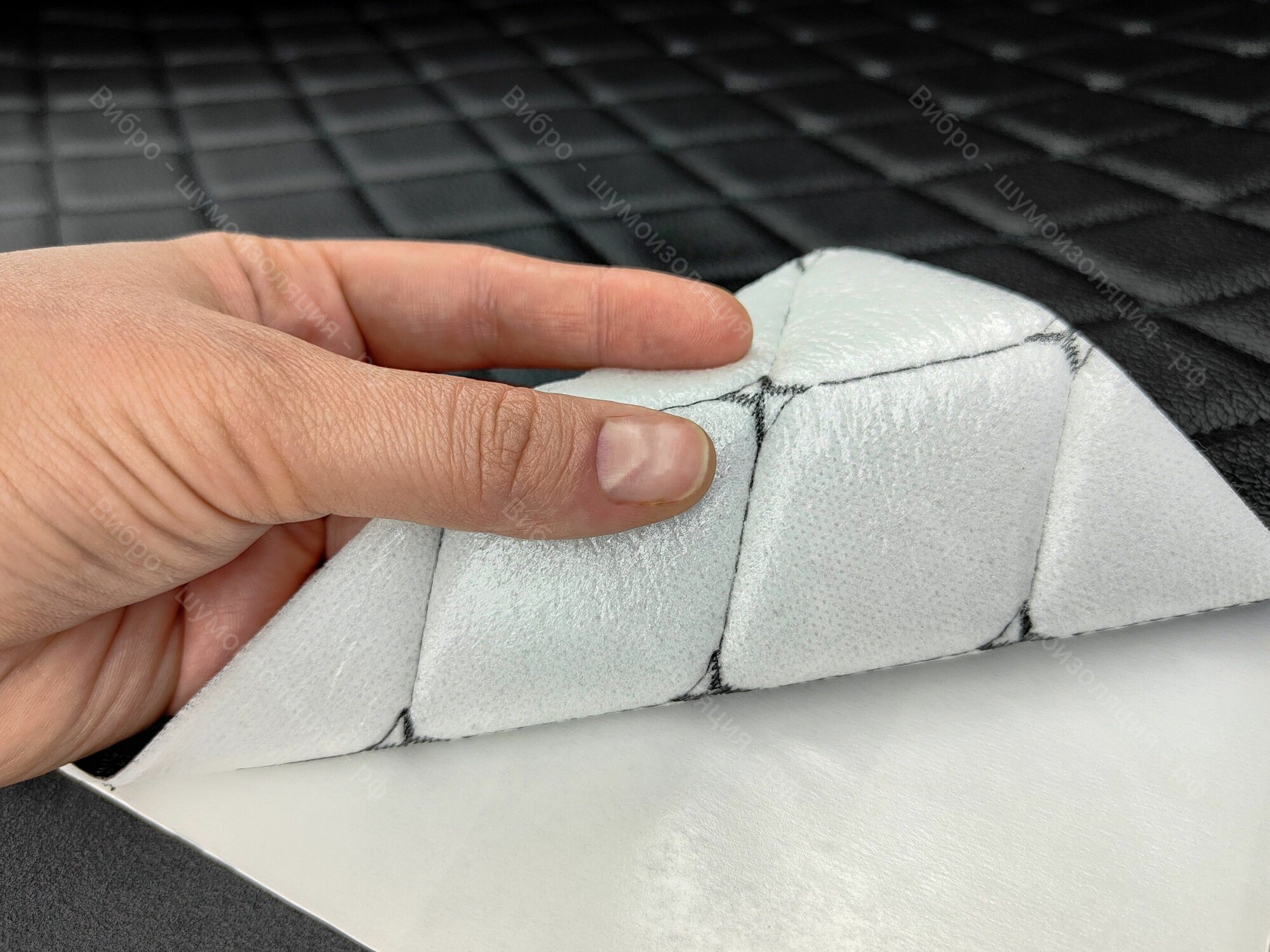 Купить Самоклеящаяся Стеганая Экокожа Dakota — Черный Ромб — Черная нитка (50х140см) Простроченная — Прошитая экокожа + поролон 5мм + спанбонд + клеевой слой. с доставкой по всей России.