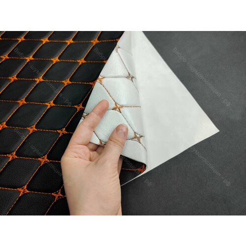 Купить Самоклеящаяся Стеганая Экокожа Dakota — Черный Ромб — Оранжевая нитка (500х140см) Простроченная — Прошитая экокожа + поролон 5мм + спанбонд + клеевой слой. с доставкой по всей России.