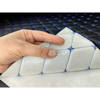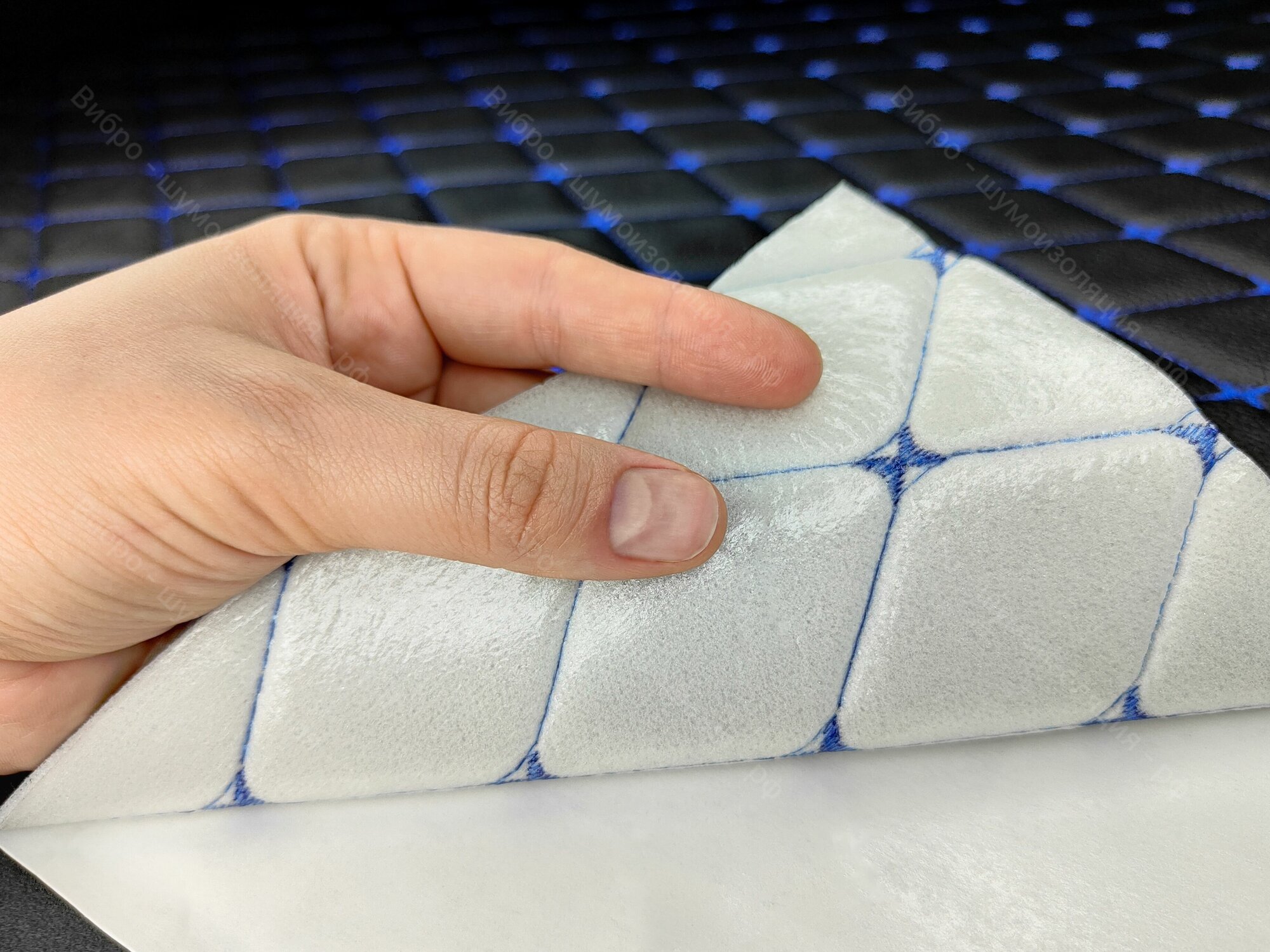 Купить Самоклеящаяся Стеганая Экокожа Dakota — Черный Ромб — Синяя нитка (50х140см) Простроченная — Прошитая экокожа + поролон 5мм + спанбонд + клеевой слой. с доставкой по всей России.