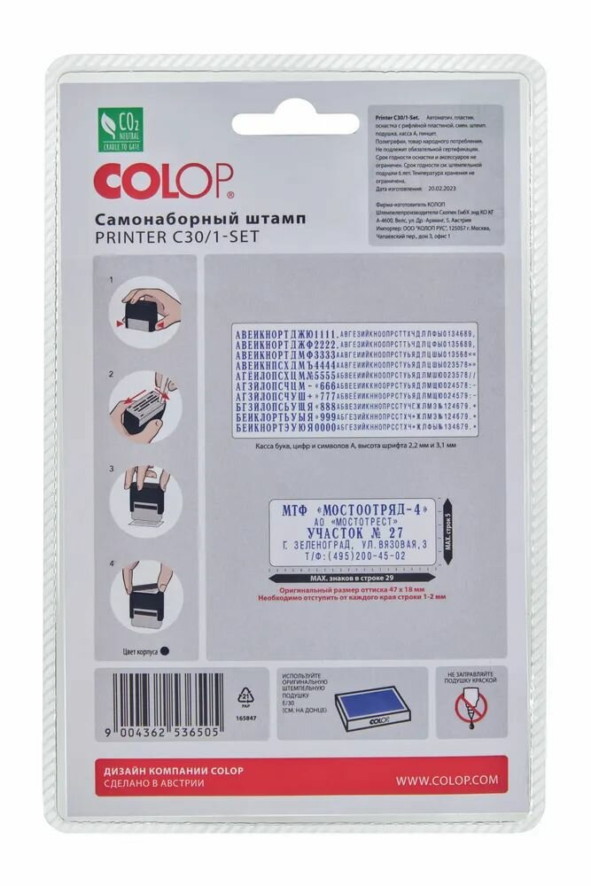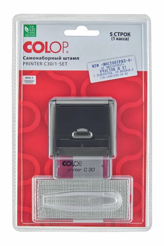 Купить Самонаборный штамп Colop Printer C30/1-Set, размер 47х18 мм, 5 строк, 1 касса в комплекте, черный с доставкой по всей России.