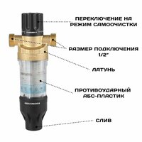 Самопромывной фильтр для воды, многоразовый, 1/2″. С системой самоочистки.: сравнение цен, характеристики, фото, актуальное наличие и цены.
