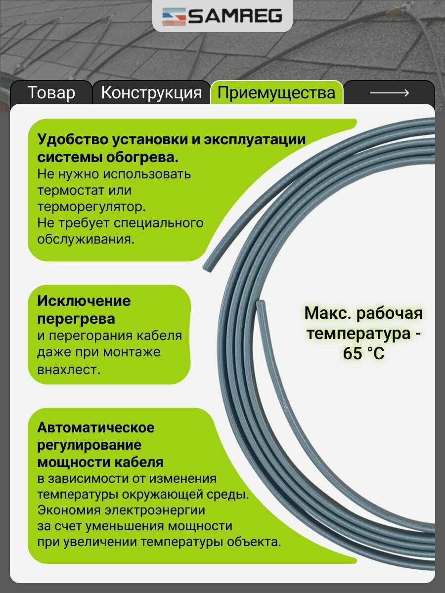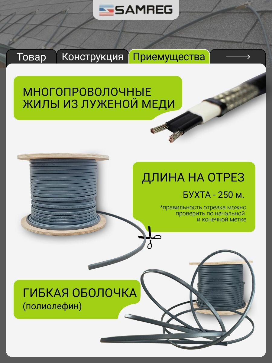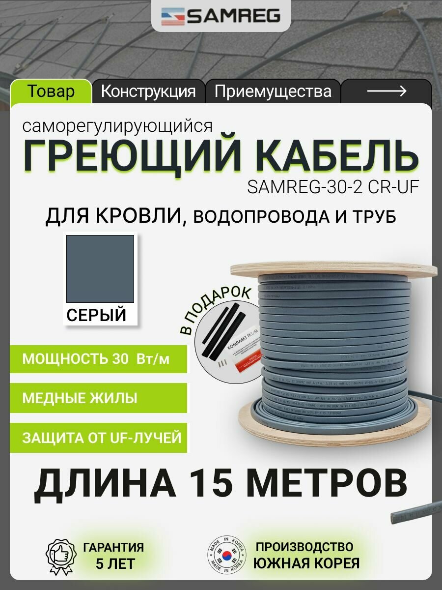 Саморегулирующийся греющий кабель для обогрева кровли, резервуаров и трубопровода Samreg 30-2CR-UF (15м, серый): сравнение цен, характеристики, фото, актуальное наличие и цены.