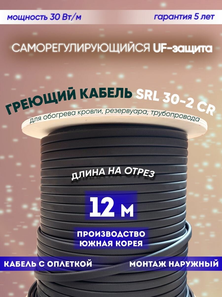 Саморегулирующийся греющий кабель для обогрева кровли, резервуаров и трубопровода SRL 30-2CR (12м): сравнение цен, характеристики, фото, актуальное наличие и цены.