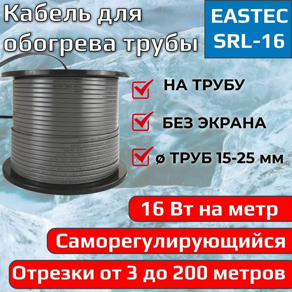 Саморегулирующийся греющий кабель EASTEC SRL 16-2 без экрана 16 Вт/метр для водопровода (на трубу) 12 метров (отрезной): сравнение цен, характеристики, фото, актуальное наличие и цены.