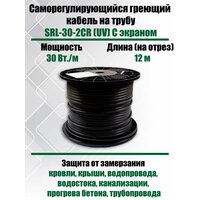Купить Саморегулирующийся греющий кабель на трубу, 12м 30Вт-2CR/ С экраном/ Черный с доставкой по всей России.