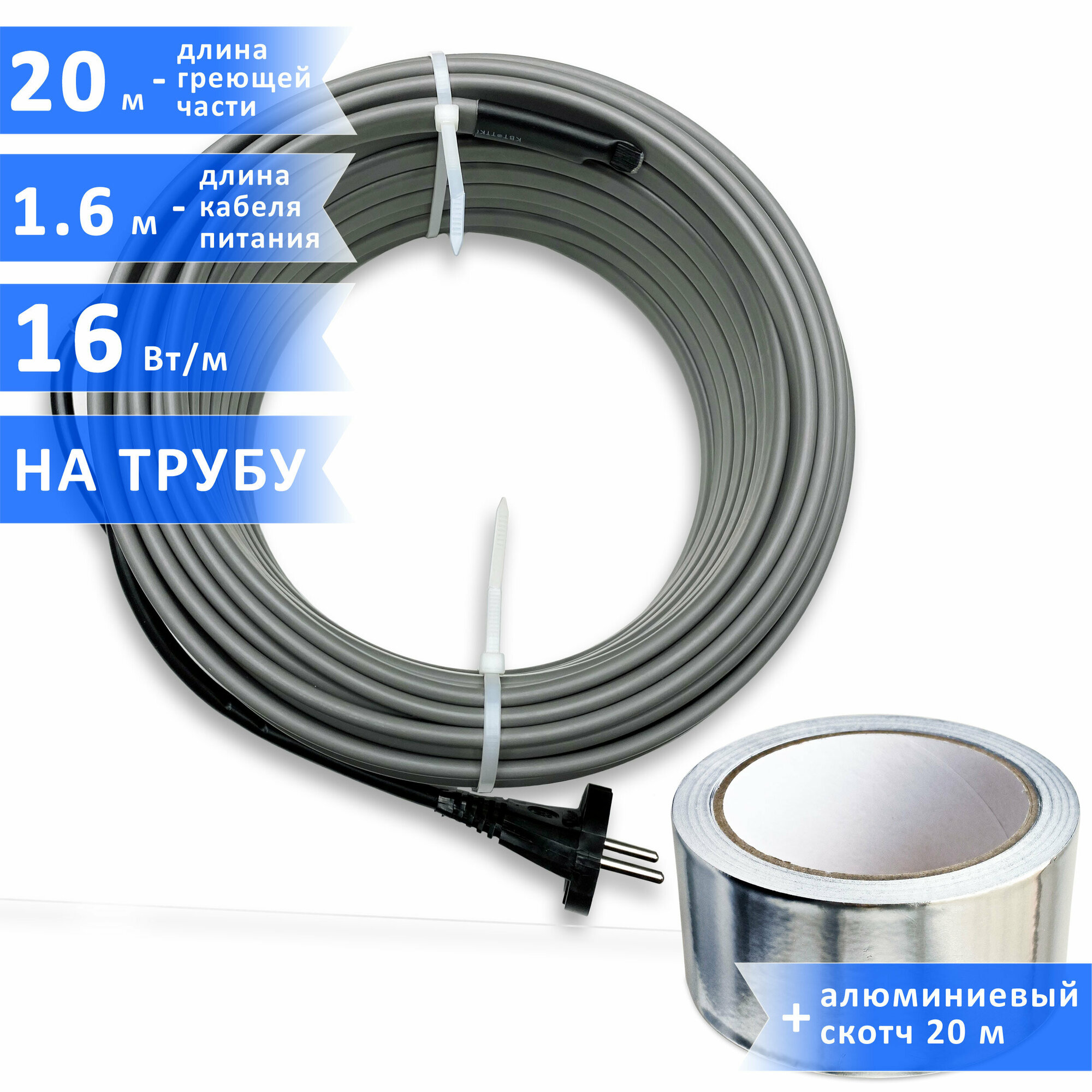 Саморегулирующийся греющий кабель на трубу (наружный) для водопровода и канализации, 16 Вт/м, длина 20 м + алюминиевый скотч 20 м: сравнение цен, характеристики, фото, актуальное наличие и цены.