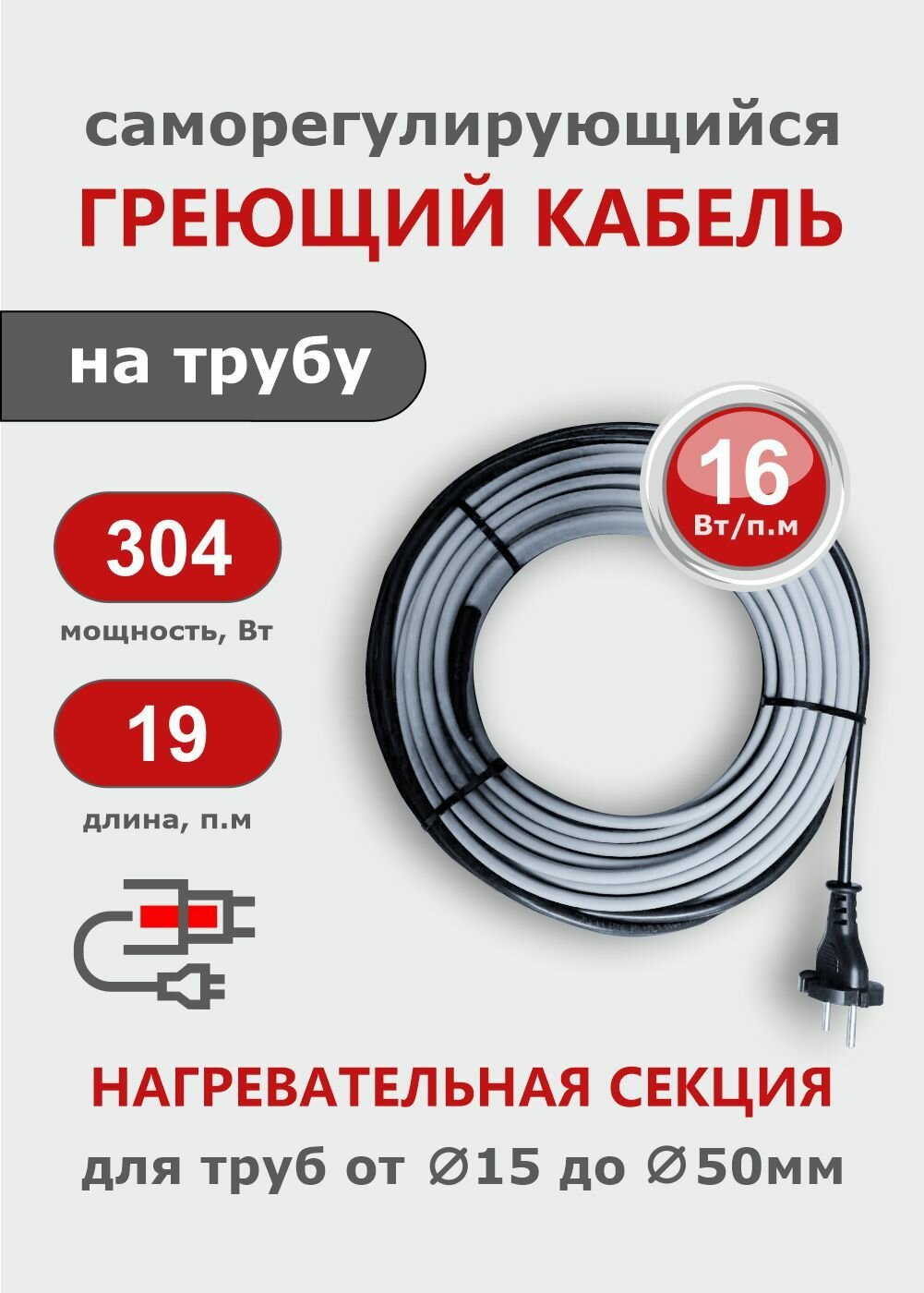 Саморегулирующийся греющий кабель на трубу СТН 19 м 304 Вт