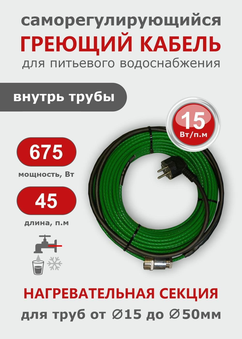 Саморегулирующийся греющий кабель в трубу СТН 45 м 675 Вт, с сальником, с гигиеническим сертификатом: сравнение цен, характеристики, фото, актуальное наличие и цены.