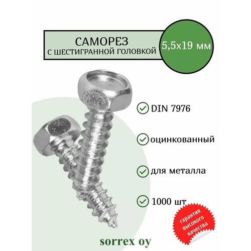 Купить Саморез 5,5х19 с шестигранной головой DIN 7976 Sorrex OY оцинкованный с острым наконечником (1000 штук) с доставкой по всей России. Саморез 5,5х19 с шестигранной головой DIN 7976 Sorrex OY оцинкованный с острым наконечником (1000 штук): сравнение цен, характеристики, фото, актуальное наличие и цены.