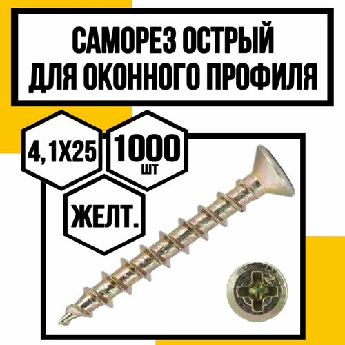 Купить Саморез для оконного профиля желтый острый 4,1х25 с доставкой по всей России. Саморез для оконного профиля желтый острый 4,1х25: сравнение цен, характеристики, фото, актуальное наличие и цены.