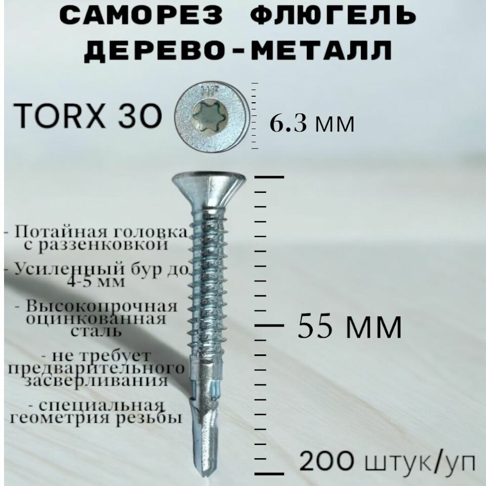 Саморез Флюгель дерево-металл 6.3*55 мм HIMTEX, Torx 30 со сверлом, 200 шт: сравнение цен, характеристики, фото, актуальное наличие и цены.
