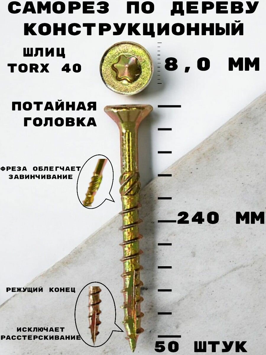 Саморез HIMTEXfix конструкционный отделочный по дереву, с потайной головкой 8,0*200/100 мм, TORX 40, сталь, 50 шт.: сравнение цен, характеристики, фото, актуальное наличие и цены.