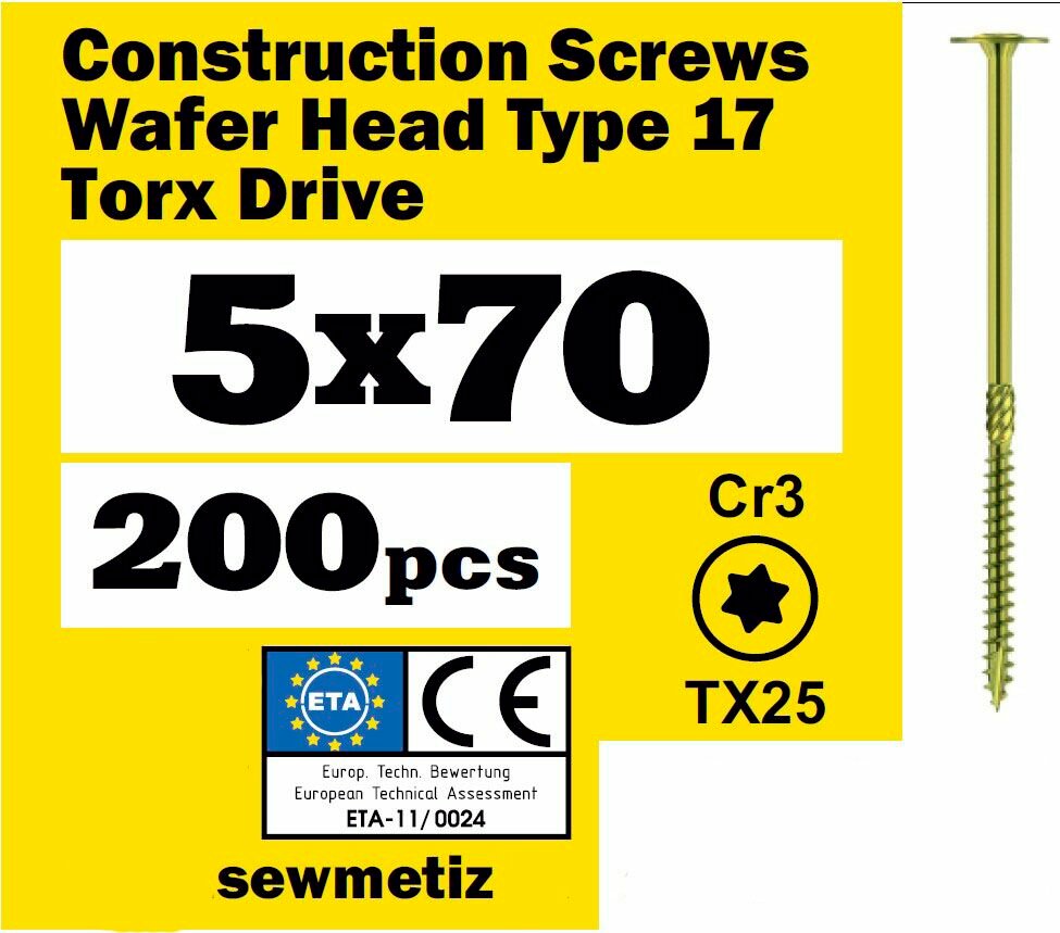 Купить Саморез конструкционный 5х70 прессшайба, TX25, SEWMETIZ (200 шт) с доставкой по всей России. Саморез конструкционный 5х70 прессшайба, TX25, SEWMETIZ (200 шт): сравнение цен, характеристики, фото, актуальное наличие и цены.