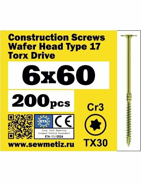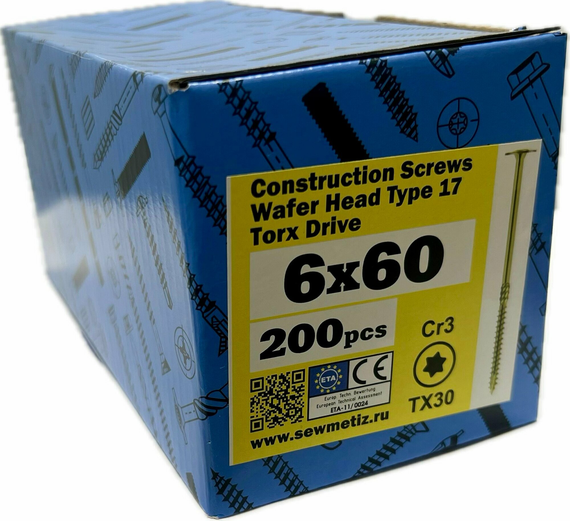 Купить Саморез конструкционный 6х60 прессшайба, TX30 SEWMETIZ (200 шт) с доставкой по всей России. Саморез конструкционный 6х60 прессшайба, TX30 SEWMETIZ (200 шт): сравнение цен, характеристики, фото, актуальное наличие и цены.