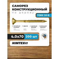 Купить Саморез конструкционный по дереву 4*70 HIMTEX потайной с доставкой по всей России.