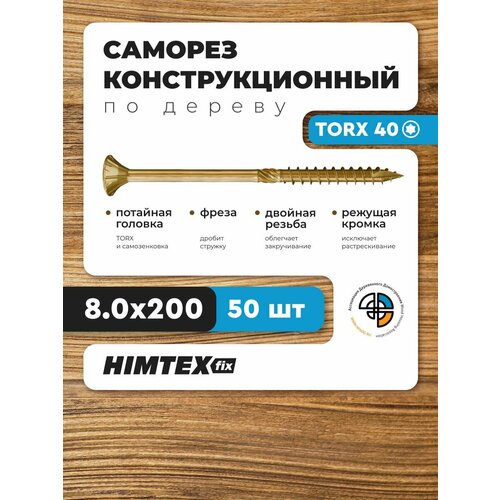 Саморез конструкционный по дереву 8*200 HIMTEX потайной: сравнение цен, характеристики, фото, актуальное наличие и цены.