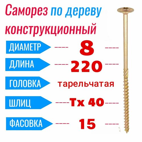 Купить Саморез конструкционный по дереву 8х220 с прессшайбой Torx 40 (15 шт) с доставкой по всей России. Саморез конструкционный по дереву 8х220 с прессшайбой Torx 40 (15 шт): сравнение цен, характеристики, фото, актуальное наличие и цены.