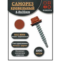 Купить Саморез кровельный 4,8х35 медно-коричневый RAL8004 1000 шт с доставкой по всей России. Саморез кровельный 4,8х35 медно-коричневый RAL8004 1000 шт: сравнение цен, характеристики, фото, актуальное наличие и цены.
