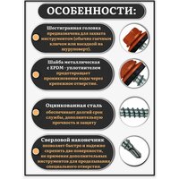 Головка саморезов выполнена в шестигранной форме, что обеспечивает удобство и надежность крепления.