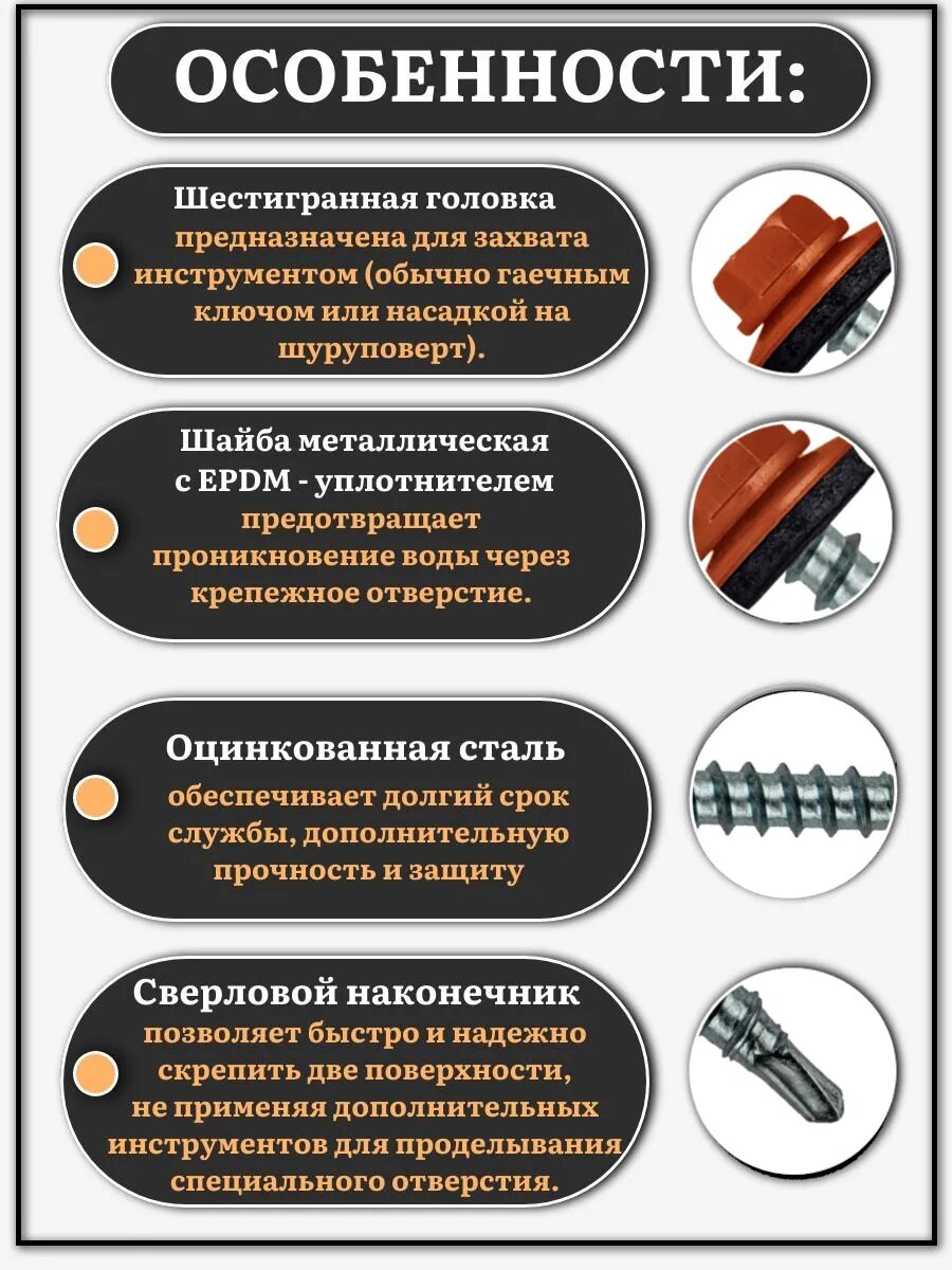 Выбирая саморезы кровельные 4,8х35 медно-коричневые RAL8004, вы получаете надежный и качественный продукт, который прослужит вам долгие годы и обеспечит надежную фиксацию кровельных материалов.