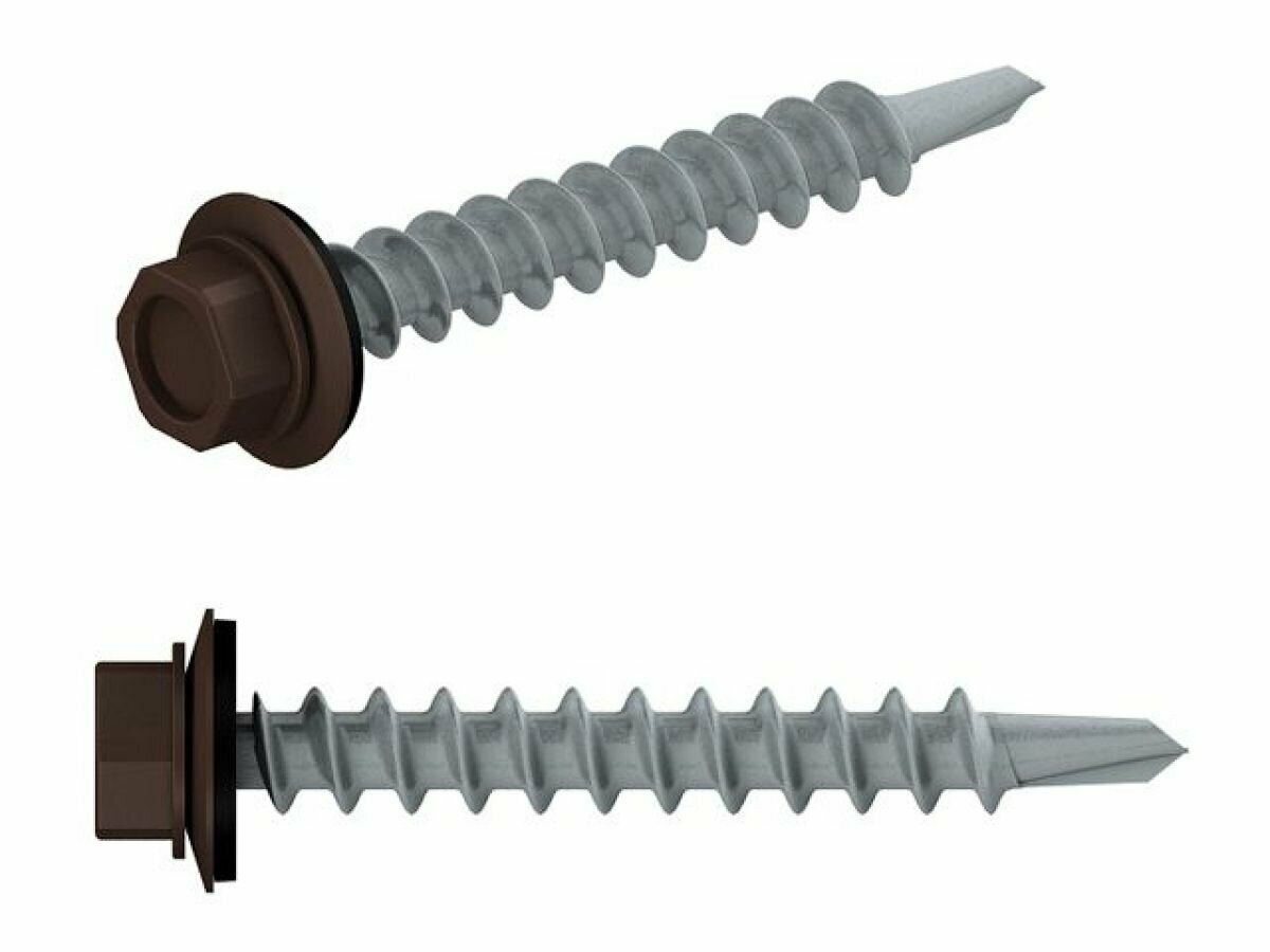 Саморез кровельный с цинковым покрытием, шайбой и прокладкой PT1 STARFIX — это крепёжный элемент с шестигранной головкой и частой резьбой. На саморез заранее надета металлическая шайба с резиновой EPDM-прокладкой. Саморез используют для крепления металлочерепицы или другого листового материала к металлической обрешётке. Благодаря сверлу на конце можно засверливаться в металл до 6 мм без предварительного сверления. Крепёж изготовлен из стали и оцинкован. Головка и шайба окрашены в цвет RAL8017. Для монтажа применяется насадка шестигранная М8. Цвет: RAL 8017 (шоколадно-коричневый).
